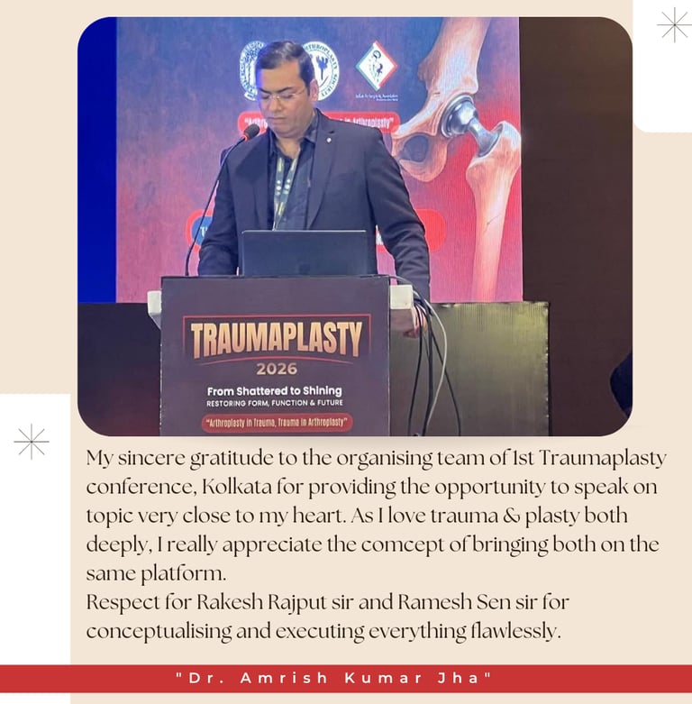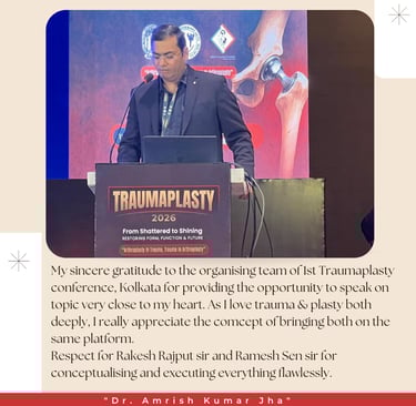 My sincere gratitude to the organising team of 1st Traumaplasty conference, Kolkata for providing the opportunity to speak on topic very close to my heart. As I love trauma & plasty both deeply, I really appreciate the comcept of bringing both on the same platform.