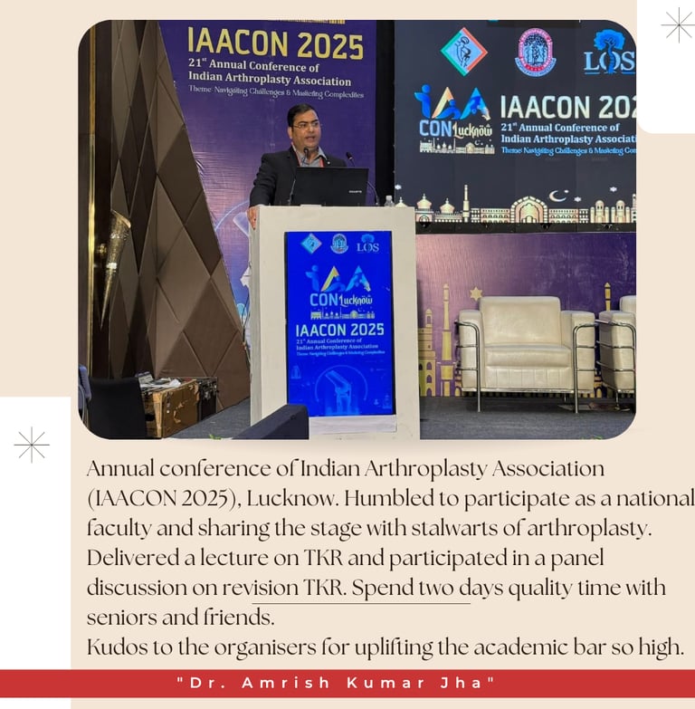 Privileged to participate as National Faculty at IAACON 2025, the annual conference of the Indian Arthroplasty Association, held in the vibrant city of Lucknow.