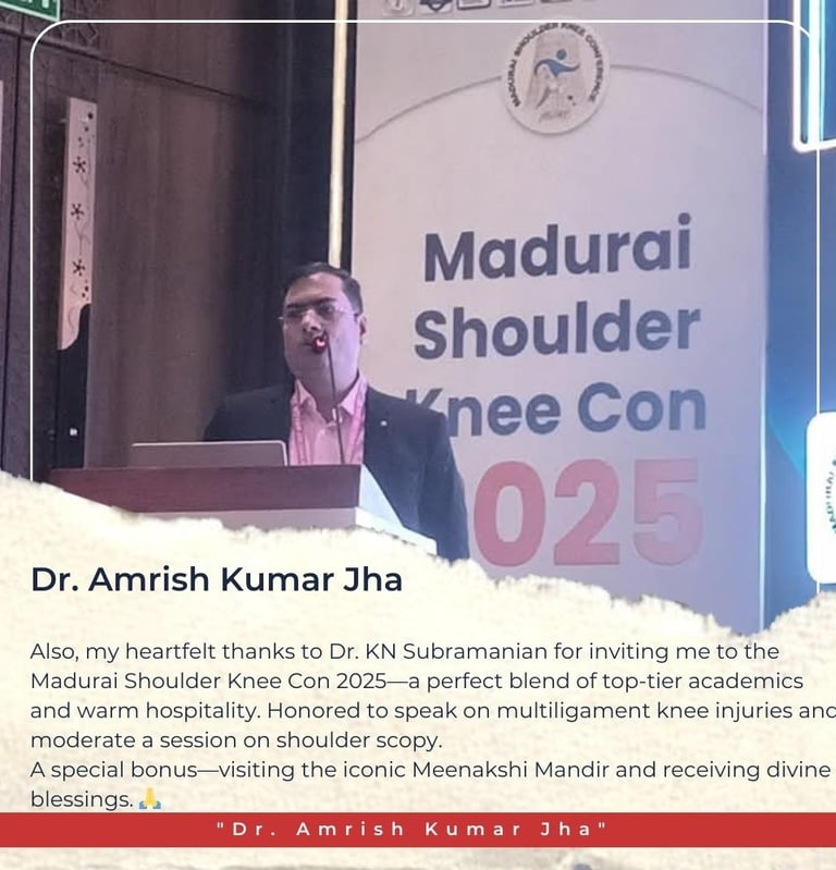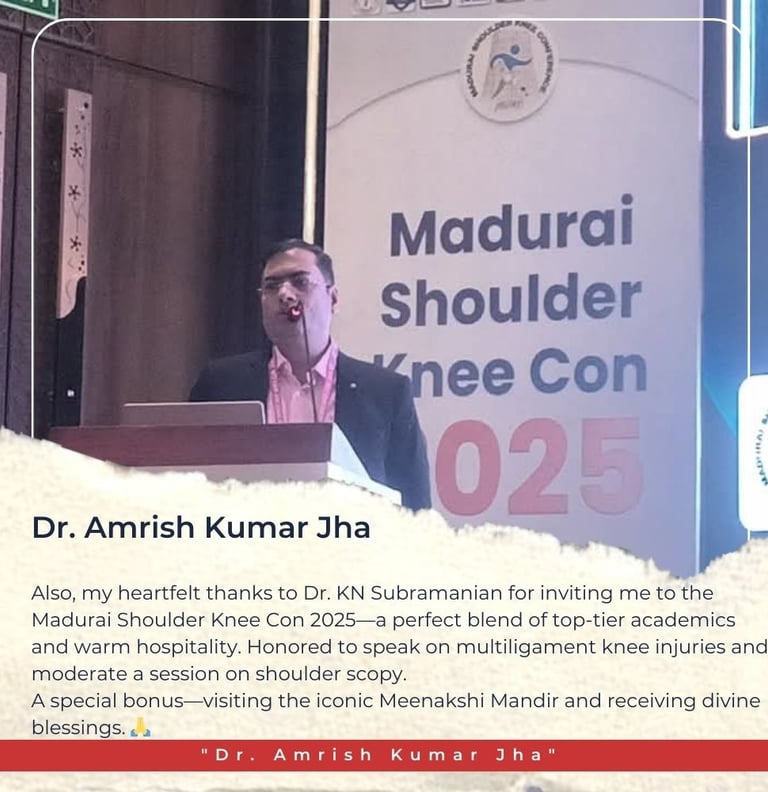 Also honored to be part of Madurai Shoulder Knee Con 2025, beautifully hosted by Dr. KN Subramanian. I shared my insights on multiligament knee injuries and moderated a session on shoulder arthroscopy.