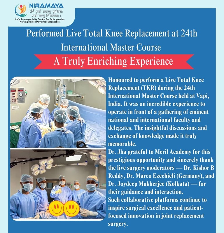 Honoured to perform a Live Total Knee Replacement (TKR) during the 24th International Master Course held at Vapi, India. It was an incredible experience to operate in front of a gathering of eminent national and international faculty and delegates. The insightful discussions and exchange of knowledge made it truly memorable.