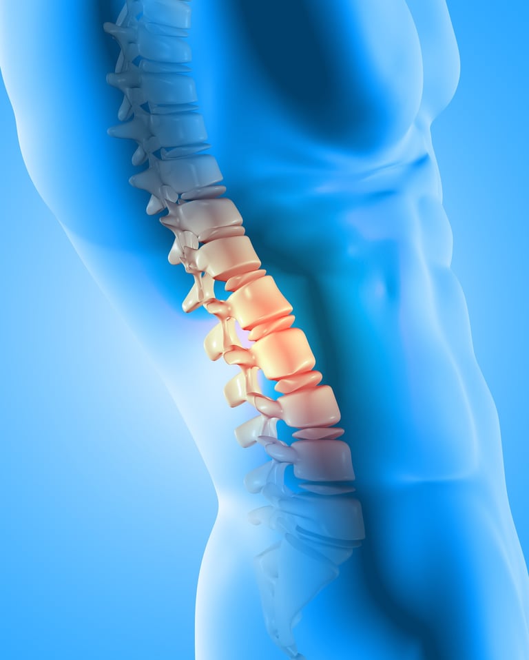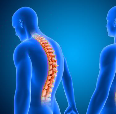 Slippage of vertebra leading to chronic pain and mobility issues.
