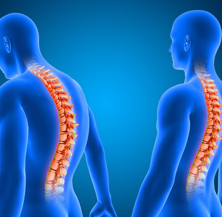 Scoliosis, kyphosis, and postural abnormalities.
